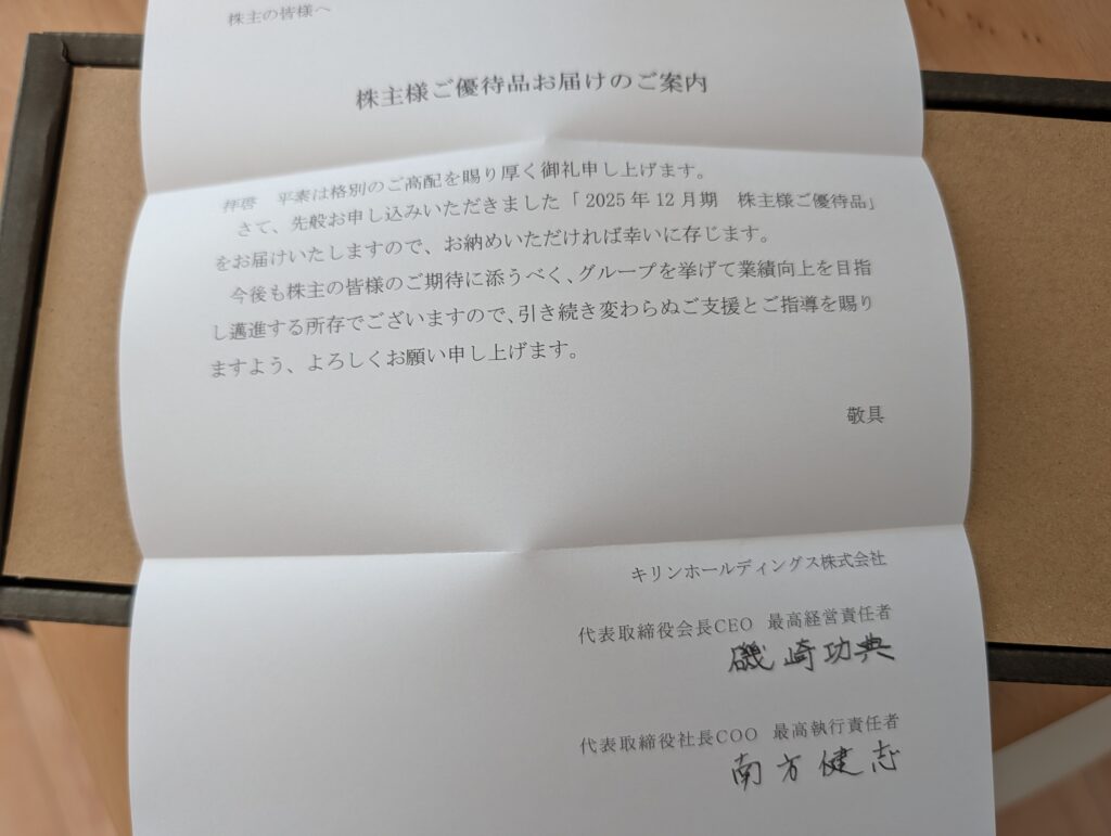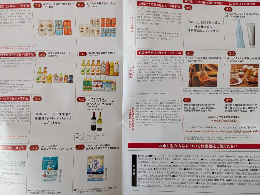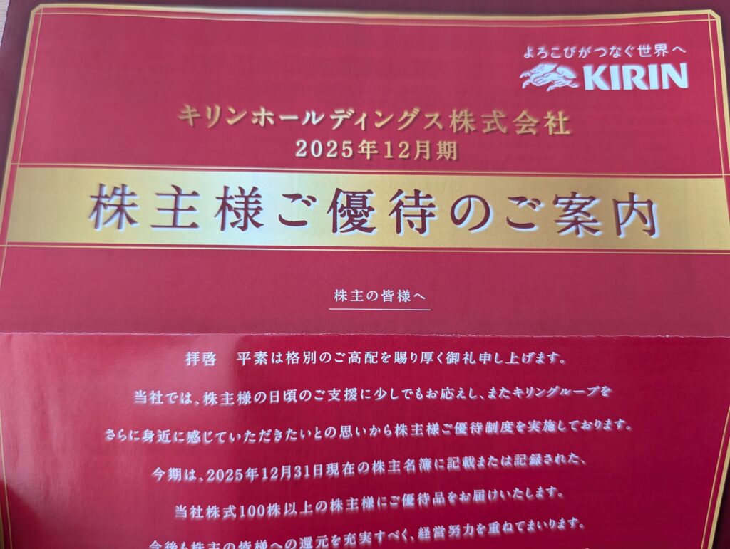 キリンから、選べるタイプの株主優待🦒