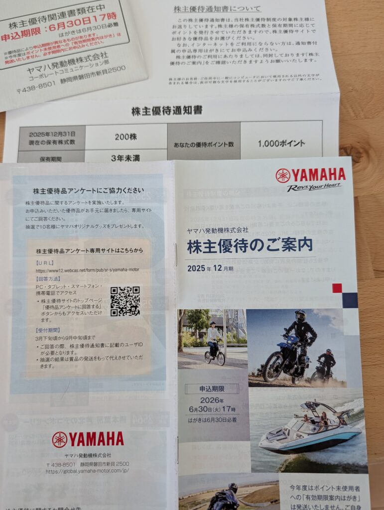 今回初取得のヤマハ発動機🏍