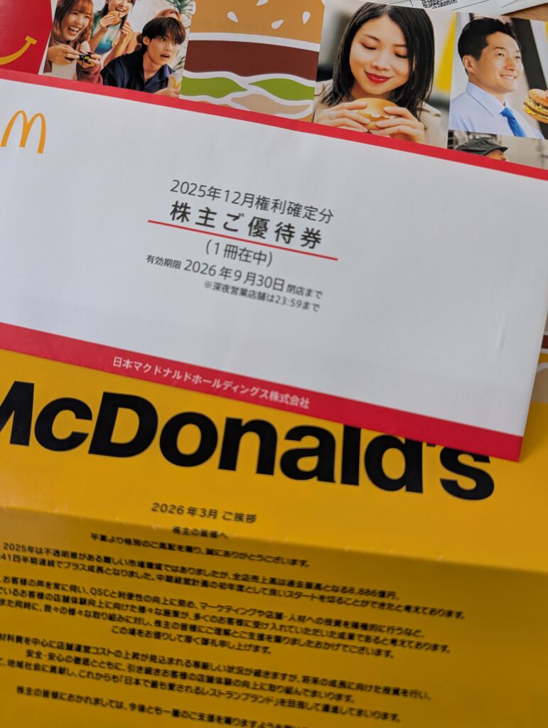 暖かくなってきたなと思ったらマクドナルドの優待券が届く時期です🍟