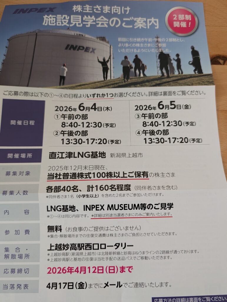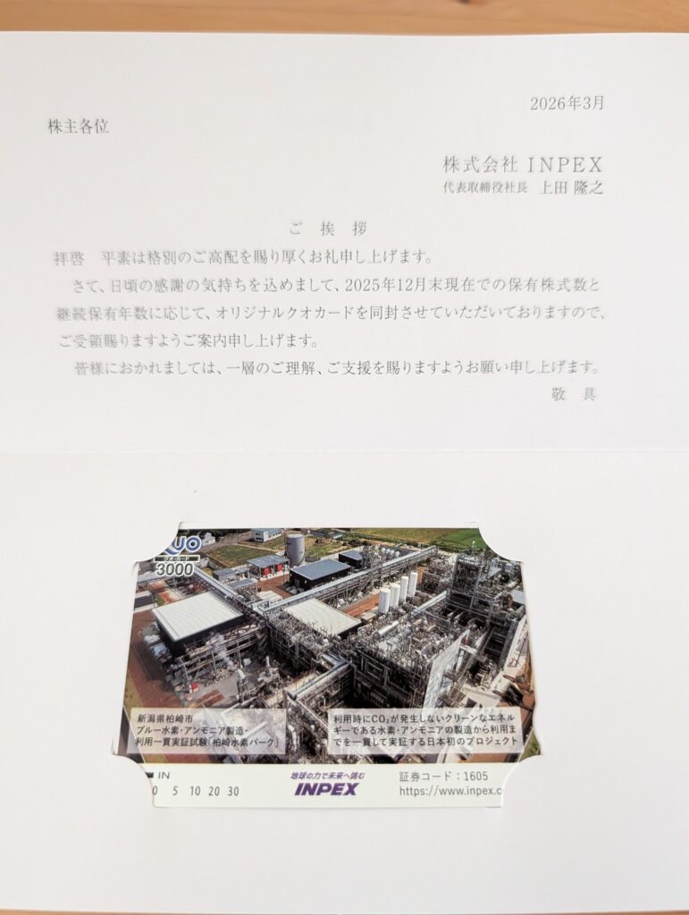 3月最後の届いたのはINPEX。
